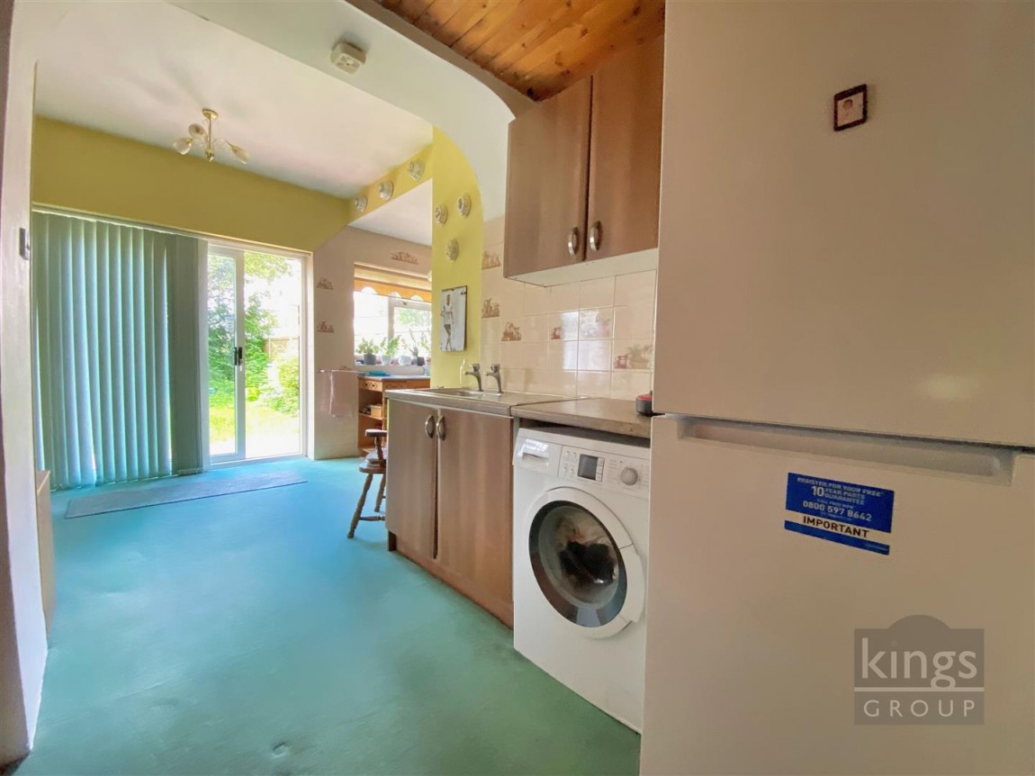 Double glazed window to the rear aspect, Double glazed sliding door leading to the garden, double radiator, carpeted flooring, plumbing for a washing machine, Base and wall units, Sink and drainer unit.